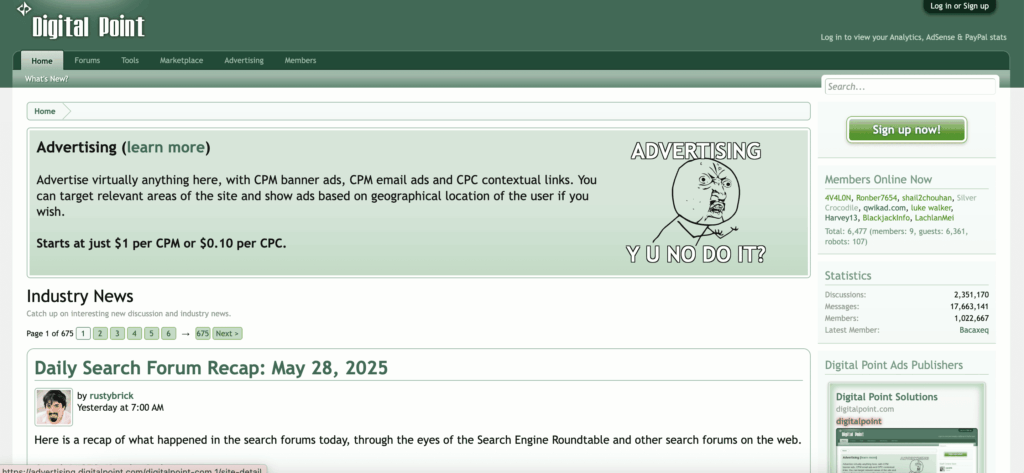 Digital Point is one of the oldest online marketing communities still active in 2025. Not an affiliate marketing forum per se but has dedicated sections for affiliate programs, traffic generation, PPC and monetization — often discussed in the context of running websites or niche blogs.