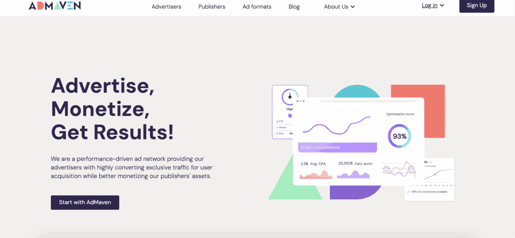 The advertising platform works with gambling, betting, dating, sweepstakes, utilities, mobile apps and mainstream offers. Adsterra is known for its format variety and reliable delivery, so it’s good for small tests and long-term scaling.