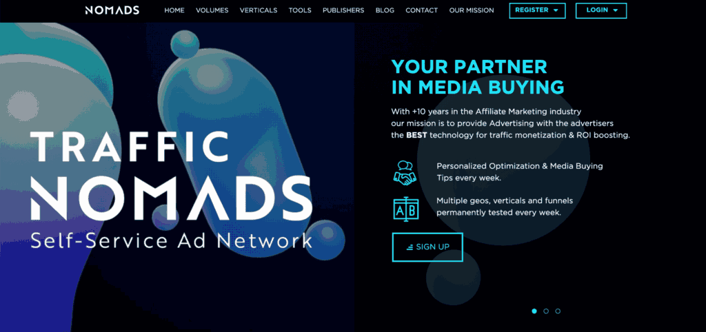 TrafficNomads is a multi-format network offering push, pop, native, in-page push, calendar and banner ads. It has strong coverage in Tier-1 and Tier-2 geos and is often used for gambling, betting, dating, finance, utilities and mobile apps.