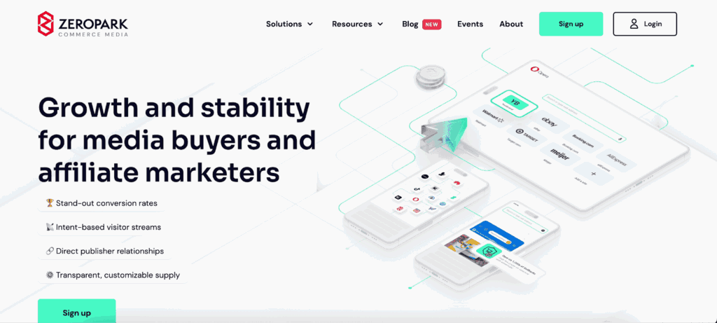 • Zeropark – Best for intent-based traffic. Domain redirect and pop formats work well for e-commerce, arbitrage and utilities.