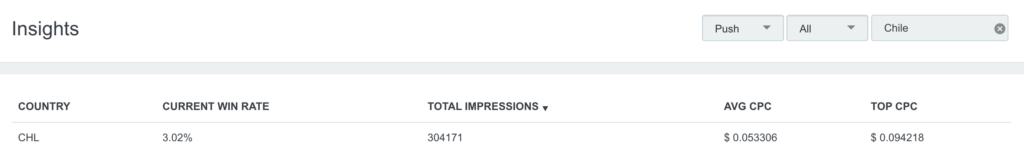 Chile is hot right now. Users convert fast, competition is moderate and traffic is easy to get through direct formats. Push and pop allow for fast testing and clear data. Here optimisation matters more than budget — optimise early, then scale.