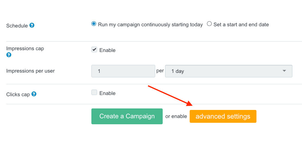 Scroll to the bottom of your campaign setup page and click the yellow “Advanced Settings” button.