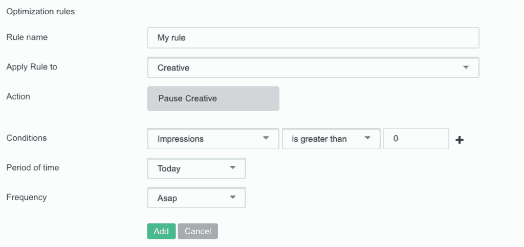 Optimization Rules are automated settings that manage your campaigns based on real-time performance data. They can pause campaigns or creatives, blacklist devices or browsers and keep your traffic clean and profitable — all without manual control.