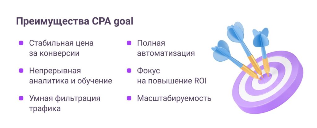 - Работа на результат: CPA goal feature оптимизирует ставки для увеличения конверсий – того, что приносит деньги.