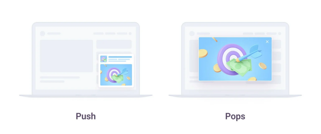 - стратегия подходит для рекламы в разных форматах (и пуши, и попсы);