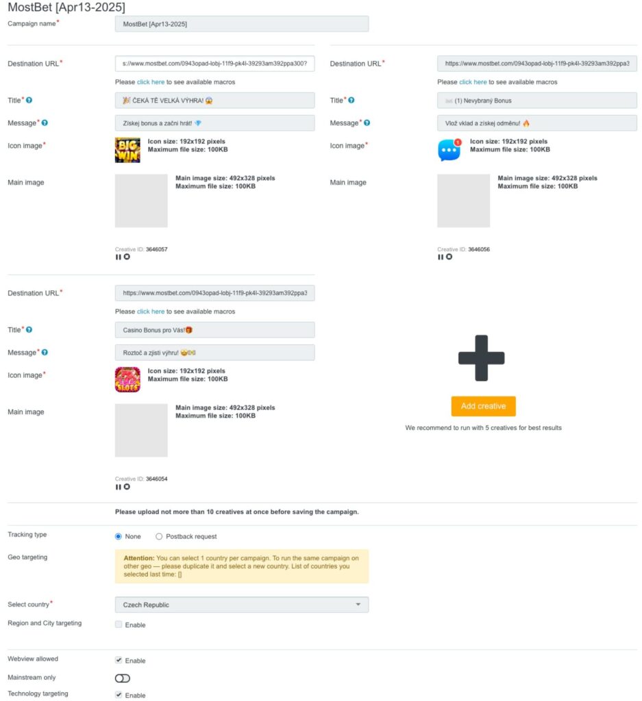 Гемблинг офферы – одни из самых прибыльных в арбитраже, особенно при умелой настройке рекламы. В этом кейсе по пуш трафику для казино Mostbet в Чехии арбитражник точно подошел к делу с умом, что и привело к успеху. Давайте посмотрим.